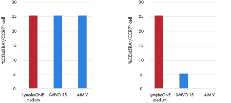 Phenotypic analysis of T cells expanded using various culture media in the presence or absence of serum.